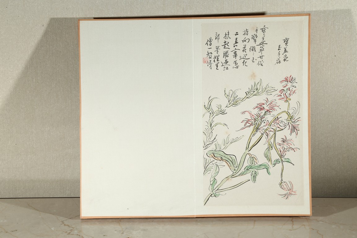 清居廉花卉草蟲壽石設色紙本冊頁十二開一八七五年作